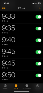 以下はスマホのアラームを5分おきにセットしていた時の画像です。