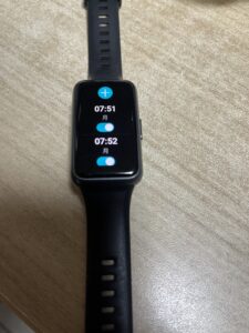 家で眠っていたHUAWEIのスマートウォッチを腕につけ、アラーム機能を使ってみました。